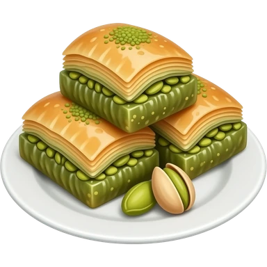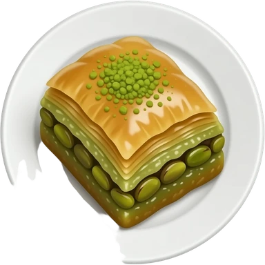 Beyaz sunum tabağına fıstıklı baklava koy ama gerçekçi olsun emoji
