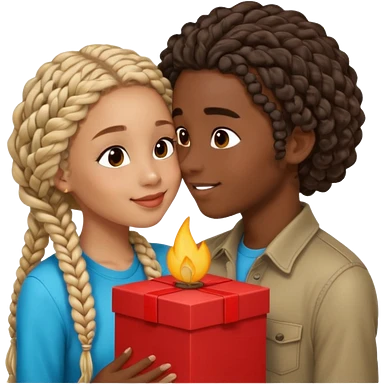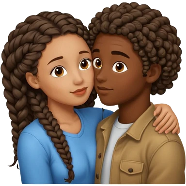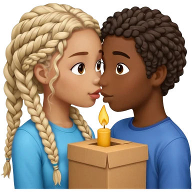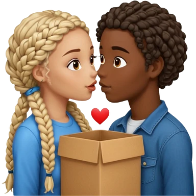 darkskin girl with box braids kissing light skin boy with curly hair emoji