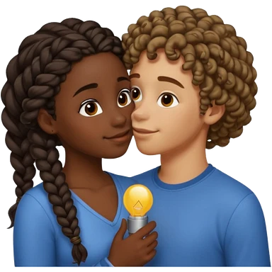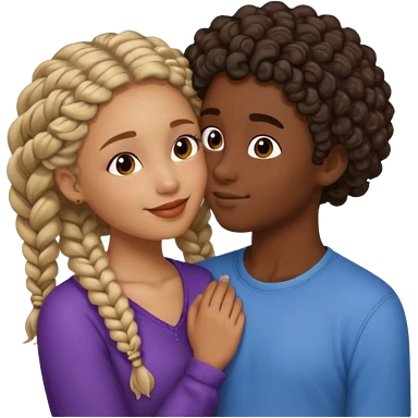 darkskin girl with braids kissing light skin boy with curly hair emoji