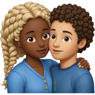 carmel girl with dark brown and tall darkskin boy hugging emoji