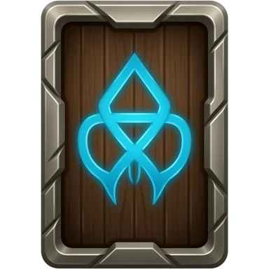 🃏 A physical dark-wood card back with brushed metal borders and a single glowing blue rune in the center. emoji