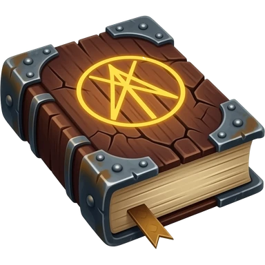 🛡️ An open, ancient-style tome, bound in dark wood, with glowing rune pages. emoji