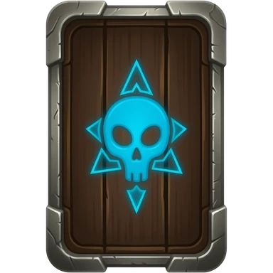 🃏 A physical dark-wood card back with brushed metal borders and a single glowing blue rune of death in the center. emoji