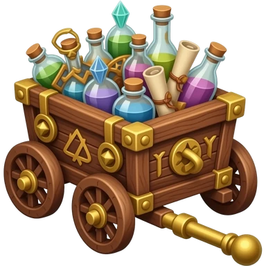 🛡️ A finely detailed wooden cart filled with miniature arcane goods emoji