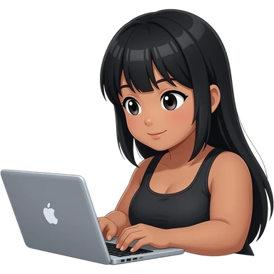 create a person on the anime who is girl with black hair, black eyes et caramel color skin, chubby girl who work on the laptop emoji