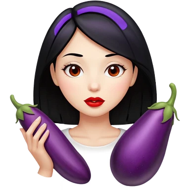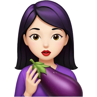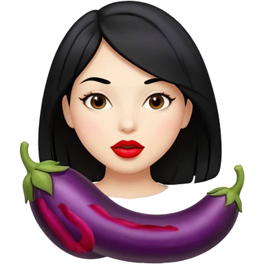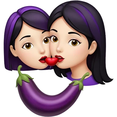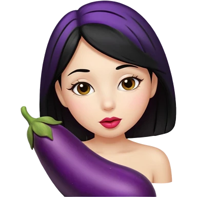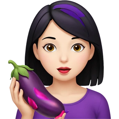 Girl with black hair kissing eggplant emoji