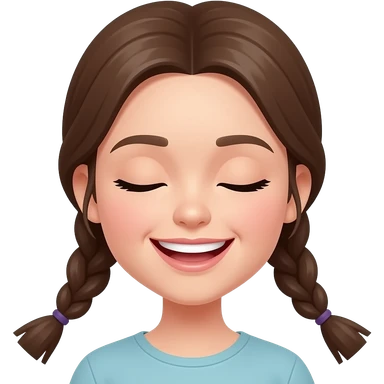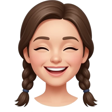 “Minimalist emoji of a young woman with braided hair, eyes closed in joy, wide genuine smile showing teeth, soft dimples, head slightly tilted down, clean vector style, bold outlines, flat colors, no background, centered, high contrast, simplified facial features only.” emoji