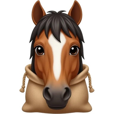 Generate a horse head inside a bag. Give it more heads and make the bag pink (1). make it look like an 2d artwork. The horses really should look like they werte painted but should look out of the bag emoji