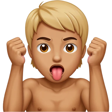 Tongue out face with two fists stacked on top of eachother below the face emoji