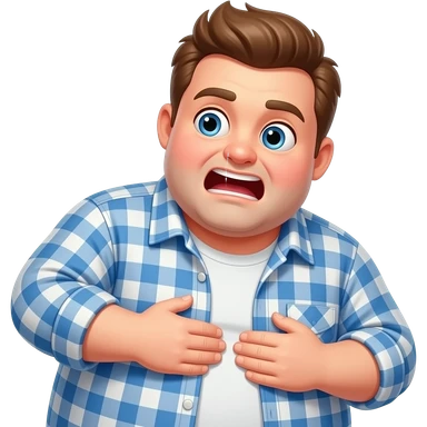make a big fat jewish man in his jewish attire with a star of david on his chest, while he is slapping his belly aggresively, while he is also farting and is very gassy,while his face is red hot from chili peppers. emoji