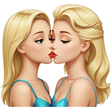 A blonde girl who looks like Yulia Gavrilina kisses a brunette girl who looks like Valya Carnival emoji