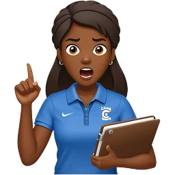 yelling female sport coach with coach wear(with LockIn written on it) and holding a notebook emoji