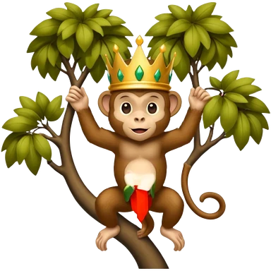 Kral taçlı ağaca çıkmış maymun emoji