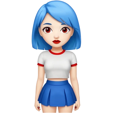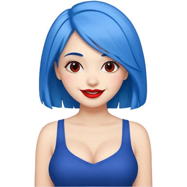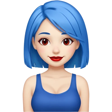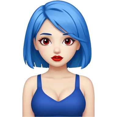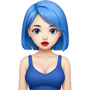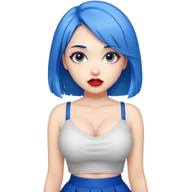 büyük memeli mavi saçlı çok güzel bir kız mini etekli kırmızı ruj emoji