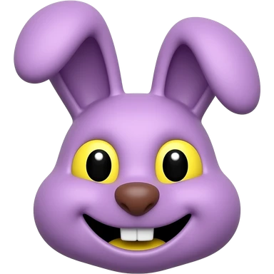 A bunny who is purple has yellow eyes but black pupoles and it's smiling and it has yellow teeth emoji