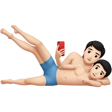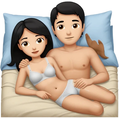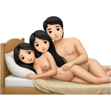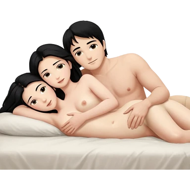 Голая девушка и мужчина лежать в обнимку, у неё большие миски и большая жопа. Он черные волосы. У неё черные длинные волосы. emoji