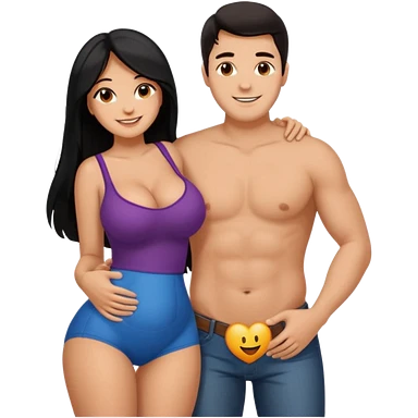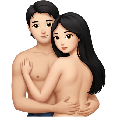 Мужчина и женщина голые в обнимку, у него тёмныеволосы, у неё черные длинные волосы. У неё большие сиски и большая жопа. Он по росту длинее emoji