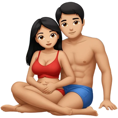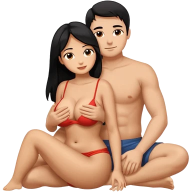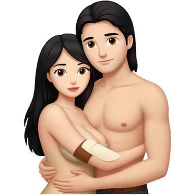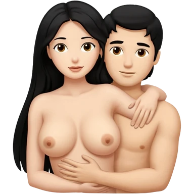 Мужчина и женщина голые в обнимку сидят, у него короткие тёмныеволосы, у неё черные длинные волосы. У неё большие сиски и большая жопа. Он по росту длинее. Стикер на пробный рост чтобы жопа была видна emoji