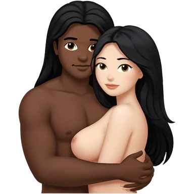 Мужчина и женщина голые в обнимку, у него тёмныеволосы, у неё черные длинные волосы. У неё большие сиски и большая жопа emoji