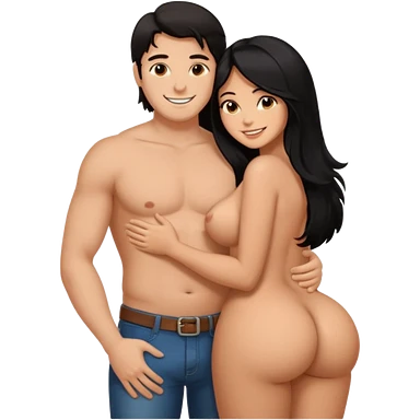 Мужчина и женщина голые в обнимку, у него тёмныеволосы, у неё черные длинные волосы. У неё большие сиски и большая жопа. Он по росту длинее. Стикер на пробный рост чтобы жопа была видна emoji