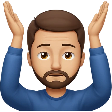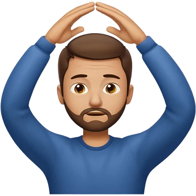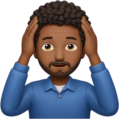 Emoji of a frustrated man with short dark curly hair and a short beard, eyes tightly closed and eyebrows furrowed. Both hands raised near his head in frustration, clean rounded emoji style, soft gradients, plain background. emoji