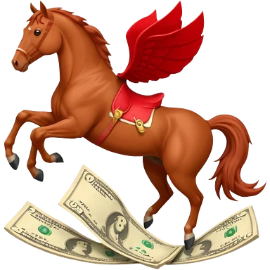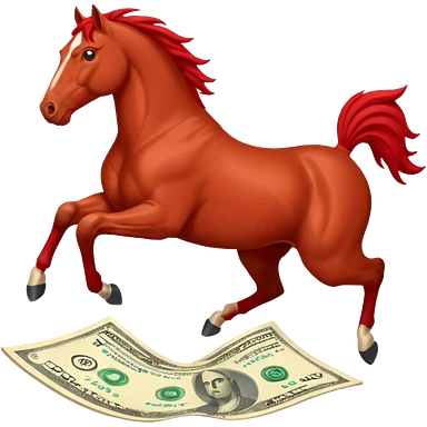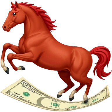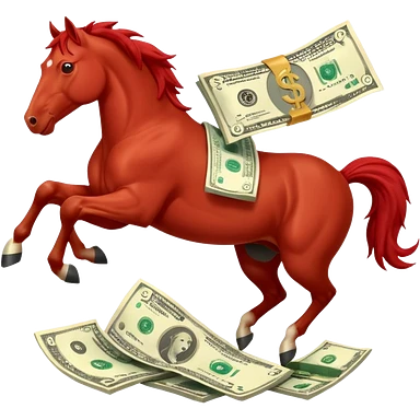red horse red hair agressive unicorn running money on on the saddle emoji