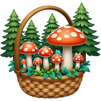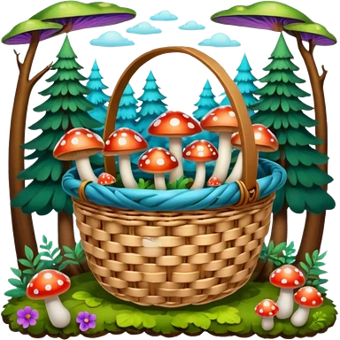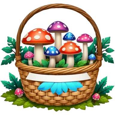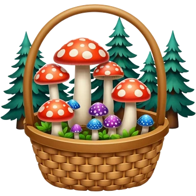 Basket with Psychedelic mushrooms and forest objects emoji