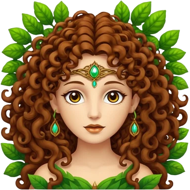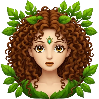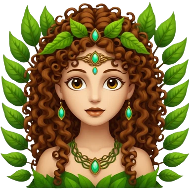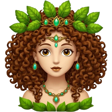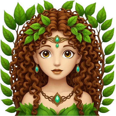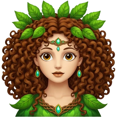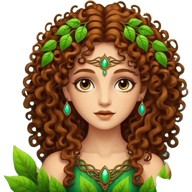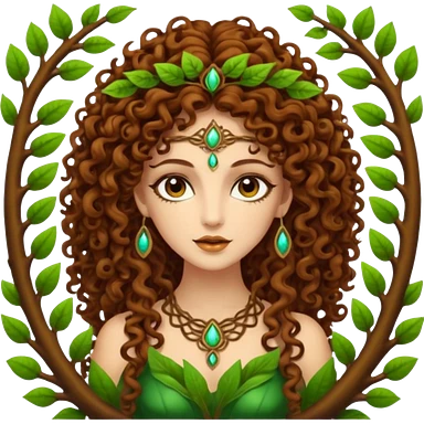 Psychedelic goddess of the forest with brown eyes , brown curly hair emoji
