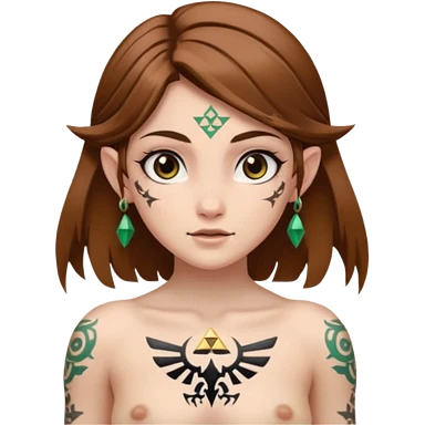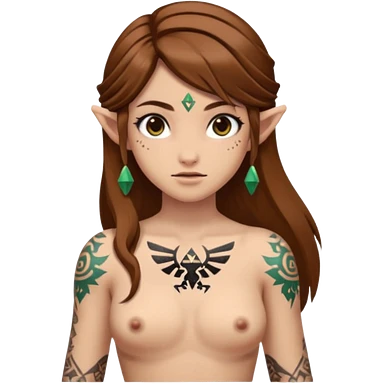 Hyrule legend of Zelda girl Brown hair brown eyesz white skin, naked with tattoos emoji