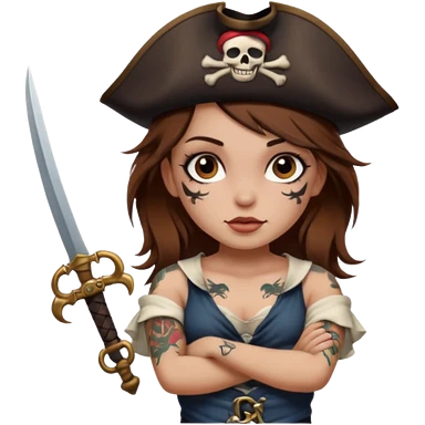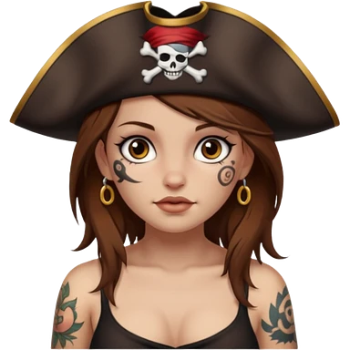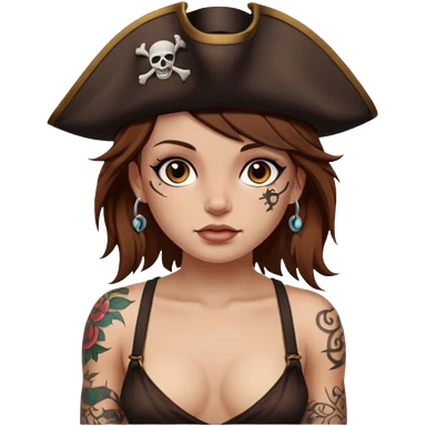 Pirate girl Brown hair brown eyesz white skin, naked with tattoos emoji
