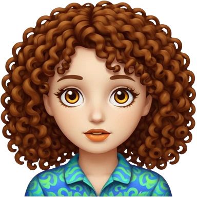 Psychedelic brown curly hair brown eyes white skin girl emoji
