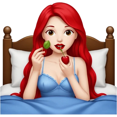 Woman eating cherries in bed emoji