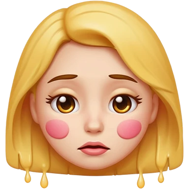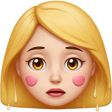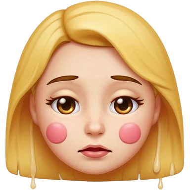 Buckets loads of cum pouring on horny female emoji with blushed cheeks and sad face emoji