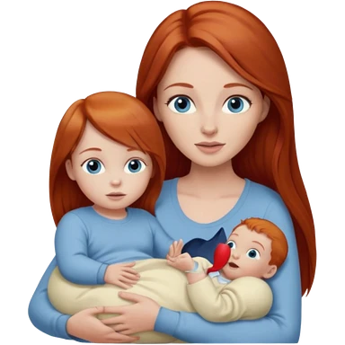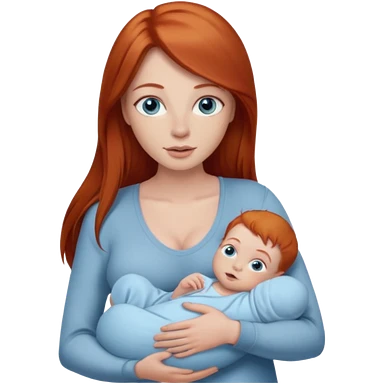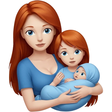 A red head with long straight hair, she has blue eyes with big boobs and a baby boy with blue eyes emoji
