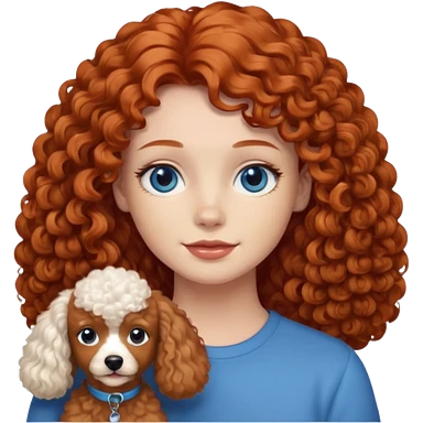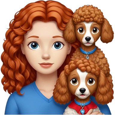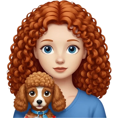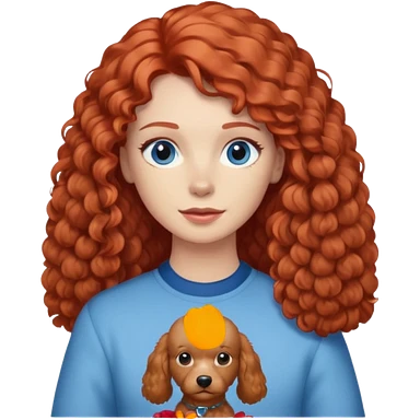 A red head with long hair blue eyes and a light brown poodle dog emoji