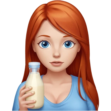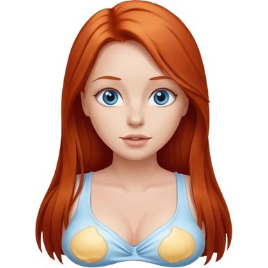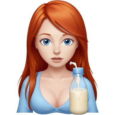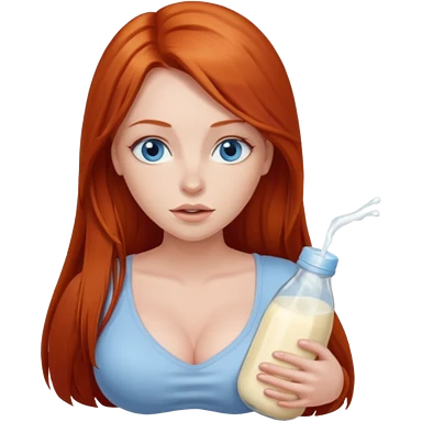 A red head with long straight hair, she has blue eyes with big boobs dripping breastmilk emoji