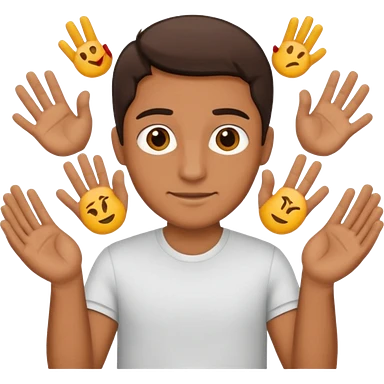 man holding 6️⃣ above the lefthand and 7️⃣ above the right hand emoji
