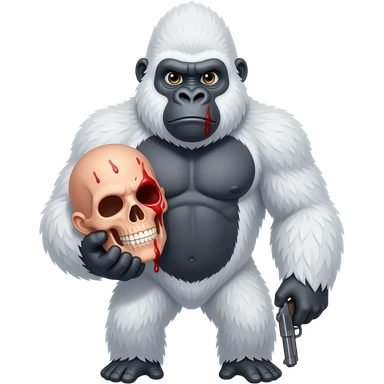 white gorilla holding a human head that's bleeding and a gun emoji