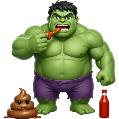 fat Hulk eating poop with hot sauce emoji