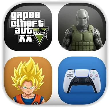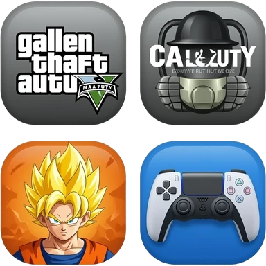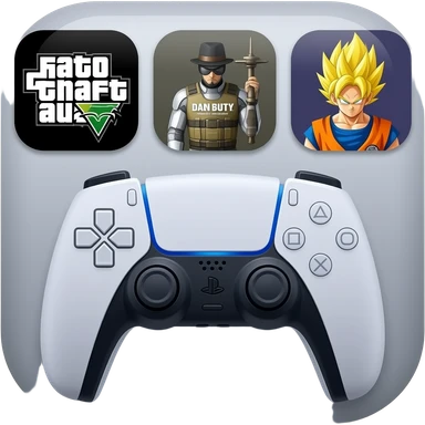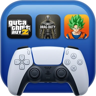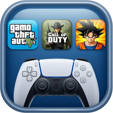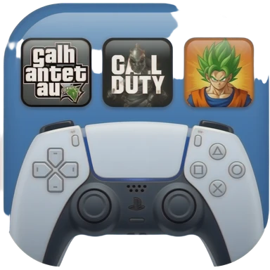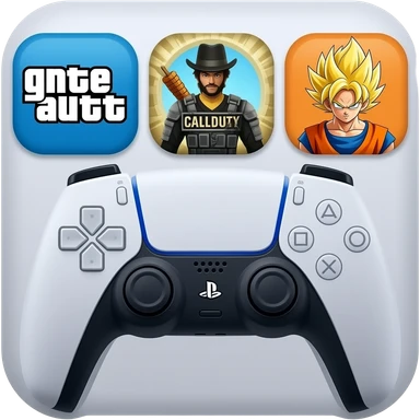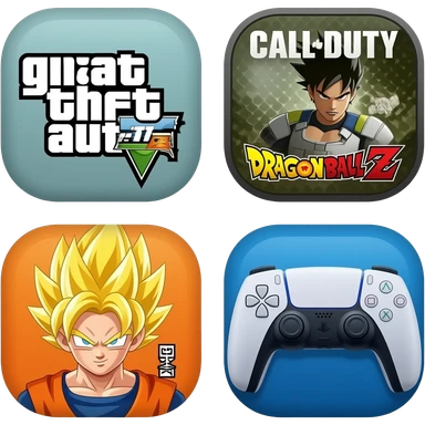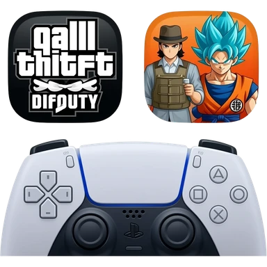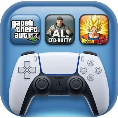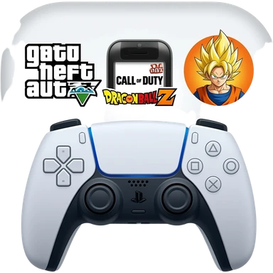 icone avec a l interieur des icone de jeu gta call off duty et dragon ball z et une mannette ps5 devant emoji