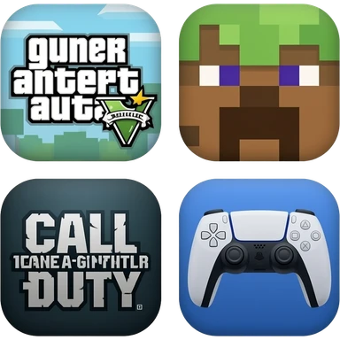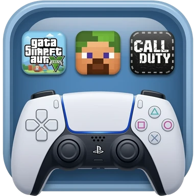 icone avec a l interieur des icone de jeu gta minecraft call off et une mannette ps5 devant emoji