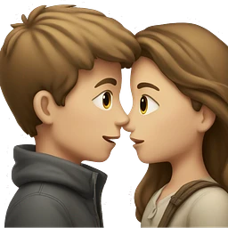 A pale brunette boy and a pale brown-haired girl kissing emoji