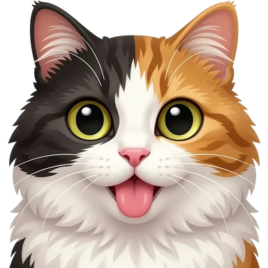 Μία calico big hair γάτα που βγάζει τη γλώσα της sexy emoji
