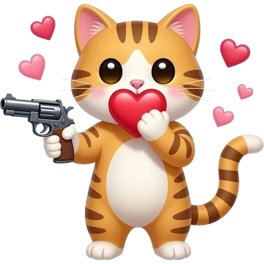 A CAT SENDING KISSES AND KEEPING A GUN emoji