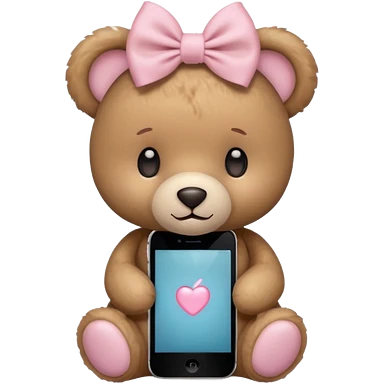 Cute teddy bear with a light pink bow on its head, iPhone style emoji