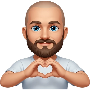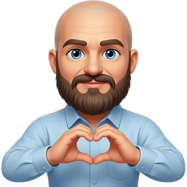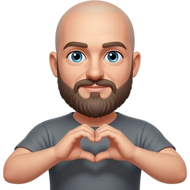 Homme barbu sans cheveux, yeux bleus qui fait le signe coeur emoji