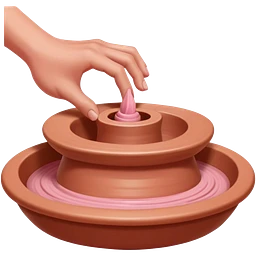 Hands making pottery, one hand inside clay vessel, one hand outside, pinching and lifting clay on a spinning pottery wheel emoji