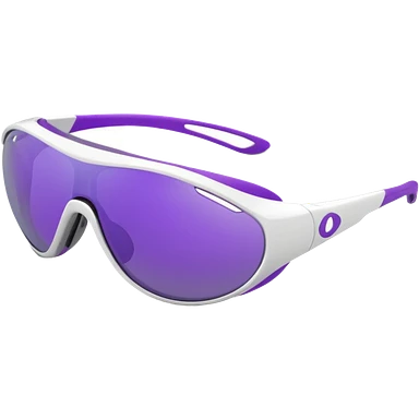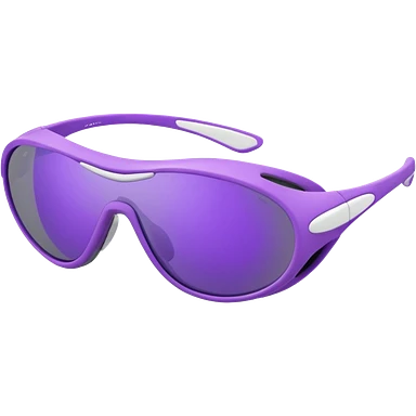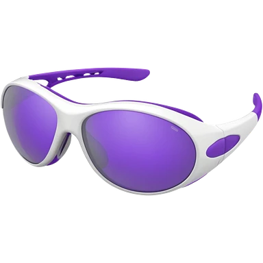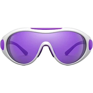 3D render of futuristic sports sunglasses, oval purple tinted lenses, white glossy frame, large gray ventilated nose guard, detailed reflections, realistic materials, high detail, isolated on transparent background, 4K resolution emoji