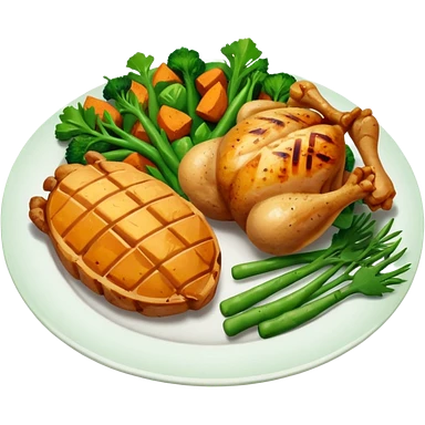 1 protein (chicken, fish) + 2 (or more) veggies + 1 starch (sweet potato or grain) emoji
