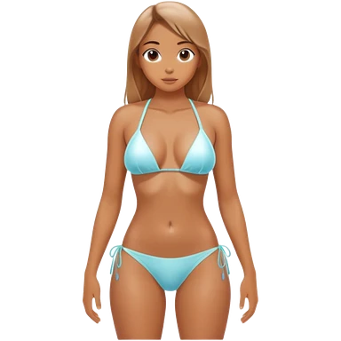 Girl in small bikini, bikini is made of thin transparent material, style of Jibaro by Alberto Mielgo, magic gap, huge cameltoe panties, pose standing, 4K, wet clothes, daylight, view from behind emoji